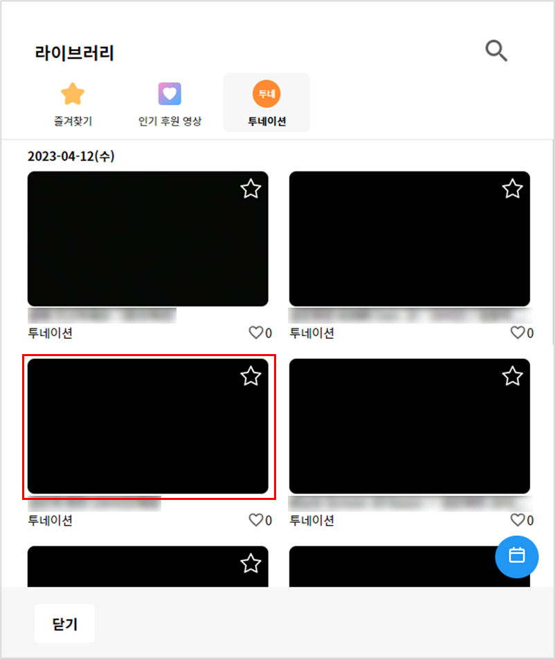 2. 라이브러리에서 후원된 영상들을 확인할 수 있으며, 후원하고 싶은 영상 선택