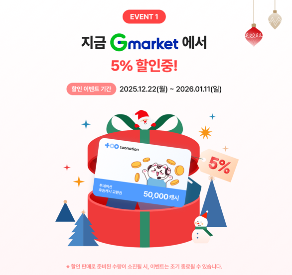 - 내용: 투네이션 후원 캐시 교환권 5% 할인